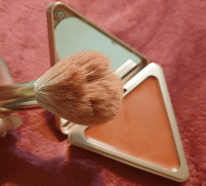 Essentially, the best way I found to use this product with a cream or liquid is to apply those to the cheek first and then blend it out with the brush. This is how I had an easier time using the Makeup by Mario Blush Stick and Glossier Cloud Paint while also keeping the bristle bunching to a minimum. However, an excess of product still gets between the bristles when it comes to creams and liquids. All the non-powder blushes I used ended up looking sheer on my cheeks every time. I essentially had to either apply a lot more product than usual or keep the blending to the minimum. I did enjoy how nice and smooth it always looked in the end. So, I wouldn’t say only use this brush with powders; just be aware that creams can be troublesome with it.