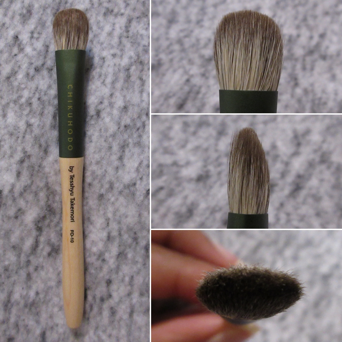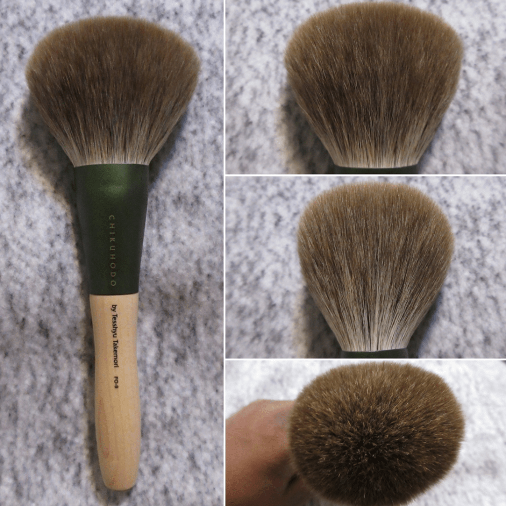 This brush is unbelievably silky soft and of course perfect for those who want a very sheer application of powder. I can use this for highlighter (when applied just on the very tips), blush (when I use sweeping motions across the cheek), and bronzer, but in my eyes this is a dedicated all over face powder brush. Although it picks up a small amount of product, when that product is very pigmented it takes more effort than I like to buff it out because it’s not dense enough for that. If I use a squirrel hair brush for blush, I prefer one that’s thicker and more round like the Z-1. Anything looser packed than that, I consider to be more ideal for setting/finishing powders. Honestly, this is more of a collector item for me and not one I intend to use a lot. When I do use it, it’s heaven though. It’s so soft and light that I barely feel any pressure on my skin. This is a beautiful powder brush, but if you already own one with grey/blue/ash squirrel hair, you’re not missing out by not having it. For those who don’t and would like a light/medium density powder brush, this might be a good place to start since comparable brushes to this would be a little more expensive. I still recommend this for collectors, but for someone looking for a more functional or versatile brush, I would direct them to Chikuhodo’s Z series and FO series.