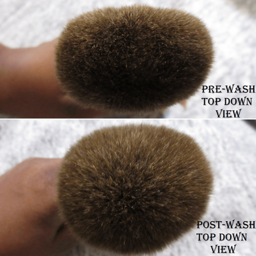Prior to purchasing my brush, I did see a few comments about how many hairs this brush sheds. I was convinced that those people happened to be unlucky in getting a bad brush because I’ve previously only ever had a true shedding issue with 2 out of probably 250 or more brushes I’ve owned in my lifetime. So, I bought the T-13 anyway and made sure to just be extra careful when I washed it for the first time (thinking that might possibly be the issue others had, if there even was a widespread issue at all). Upon taking it out of the package and feeling the brush with my fingertips, I was getting quite a few loose hairs with each pass. I was a bit alarmed, but thought about how packed with hairs this brush is and that perhaps it was overly filled as a precaution to ensure the brush will maintain its mushroom shape. I was extremely careful washing the brush and ensuring no water went into the ferrule, I gently squeezed the excess water onto my microfiber towel, and then I hung the brush upside down from my brush tree as usual. Now that I’ve been using this brush on and off for months, I can say that every time I use this, I lose anywhere from 2 to 6 hairs. This is highly unusual from my experience with my brush collection and this is the reason I don’t even like to swap between using this brush for various purposes if it requires me to do more than some light sweeping on a microfiber towel to clean off my brush. While I am concerned about the longevity of this brush over time, there is still so much hair that I’m not worried about it falling apart on me for at least a few years. It’s dense due to sheer volume, but it retains that airy feel due to the bundling. I currently am using this brush exclusively with powder bronzers and since I still love it so much, I considered whether I should get multiples to use for other purposes. That shedding issue is what stopped me. I’m happy to have this one, but I can’t justify buying more than one.