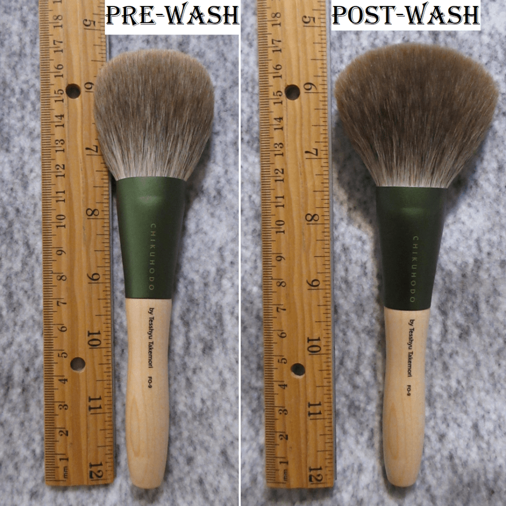 When I saw this brush, I was so excited because the mushroom head shape that it becomes post-wash is exactly what I’ve always wanted in a large bronzer brush! I usually don’t use big brushes for my bronzer because they tend to be shaped in a way that prevents me from being able to keep the product close to my hairline and in not so thick of a section under my cheekbones. This brush has a semi flat portion at the top that allows me to apply the product while simultaneously buffing everywhere else that the rounded edges touch my face. This brush is so poofy with cloud-like softness that blending bronzer with it is everything I hoped it would be. I love it! While I can use this brush for blush as well, it’s much bigger than I like or am used to for cheek application, so I prefer to use a different brush such as one of my holy grail blush brushes, the Chikuhodo T-4.