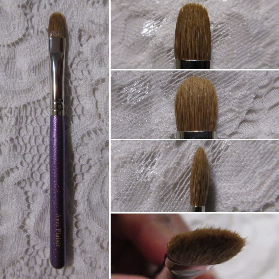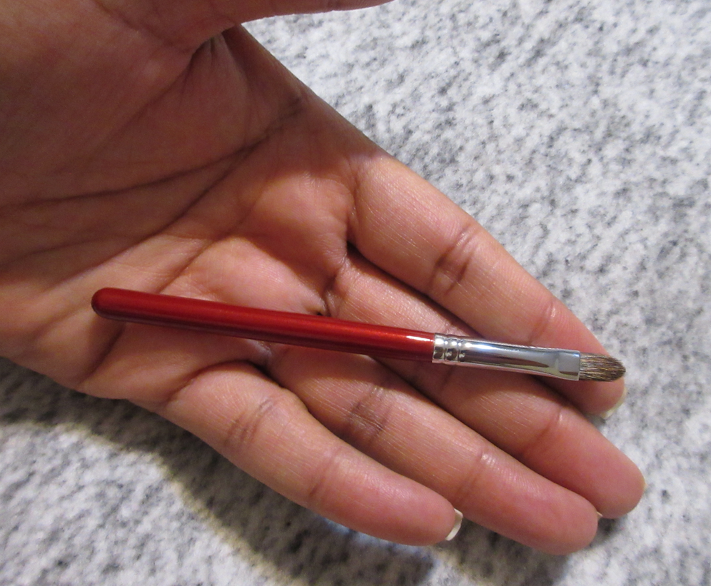 This is the only outlet brush I regret getting because it’s just not functional for me. It’s exactly as soft as one would expect for a Canadian Squirrel brush, but because it comes to such a sharp point, it’s not as comfortable to use on my sensitive lower lash line. It’s not pokey during the entire use, but it is enough to be irritating. Also, because of this hair type, even if I swirl the product in eyeshadow enough to fully coat the hair, because it’s so delicate, it can only apply it to my skin in a gentle sheer amount. It basically touches the area to apply it but I can’t get enough force to actually press it in and build color. My only option if I want a built up look is to wet the brush, which this is not the kind of hair I want to apply damp. I don’t think it would damage it, but it’s just not something I usually do with squirrel. I might start to anyway, just so I can have another use for this brush. And when I use this and it makes my eyes water, the brush gets wet anyway. Something small like this should be good for lining the eyes, but again, because it applies such a light amount of product, that doesn’t make for a good liner unless someone wants a watercolor type of look on the eyes. I always want maximum pigmentation, so that’s not for me.