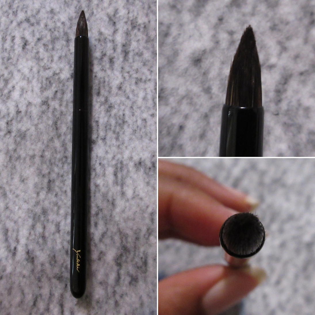 This brush is part of Koyudo’s Yoshiki Series, even though the main brushes in the series are supposed to be identifiable by the cherry birch wood (mizume-zakura) handles and saikoho goat bristles. I own the 05 Lip & Eyeliner Brush S, but I misplaced that tiny brush and hadn’t seen it for at least half a year. That’s why I figured it couldn’t hurt to buy another liner or pencil brush.