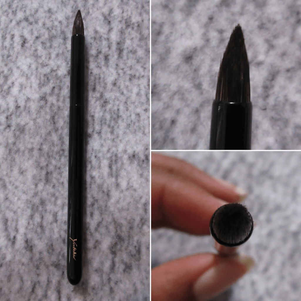 Despite the soft bristles, the tight bundling doesn’t allow for as much flexibility, so it feels a bit firm. The pointed tip also makes it feel a bit pokey at times, not from sharpness but purely due to the shape. So, despite the many benefits and how impressed I am with the beauty and construction, it’s not the best fit for my makeup style. Had I paid the full 6500 YEN price, I would not have been happy with this purchase. However, for 4550 YEN, that’s a fairer price. I understand that the squirrel element is what makes this such a good deal, but the shape of it and my preferences make this a little less valuable to me.