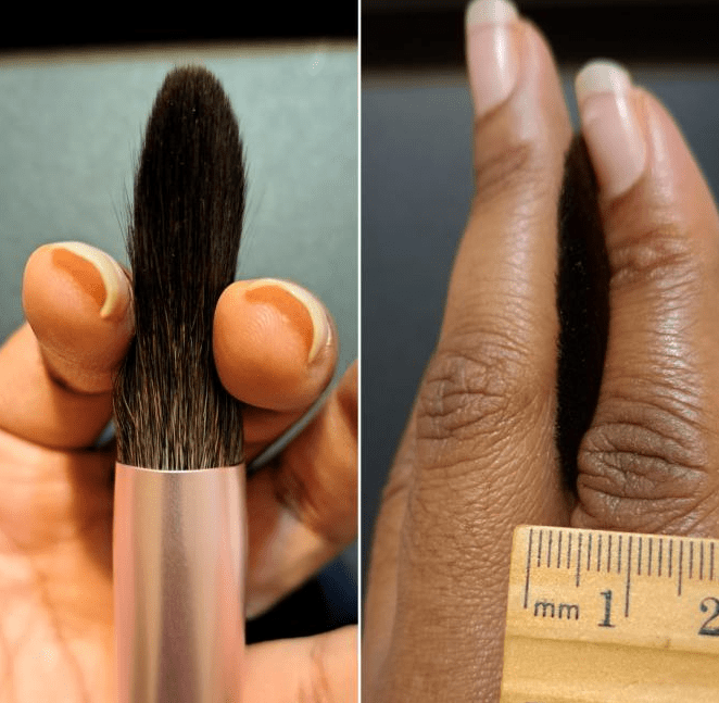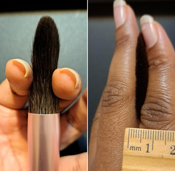 I accidentally dropped this brush, and I believe that’s what caused the ferrule to bend and create a flat edge at two points, which made the hair shape go from being circular to a quarter section being flat. I have a tool from my crafting days that I used to get it back in shape. I would not have attempted to fix a more expensive brush, and a few times I did make it a little worse before making it better, so I only recommend those with experience to attempt the same as I did to fix things. I have dropped other brushes in the past, but this is the only one I’ve noticed that actually got damaged from that happening. Perhaps the others did too and I just didn’t notice it, but I figured it was something I should mention. Those who aren’t as clumsy as I am sometimes will likely not have to worry about it. I certainly still love this brush and recommend it.