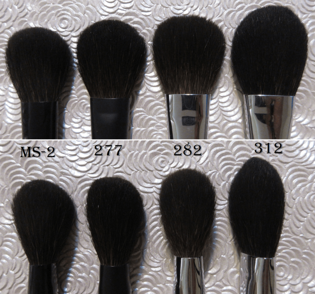 I wanted to compare the Muragishi Sangyo HS-2 with the Eihodo 277 and 282 because they are such similar shapes and considering the HS-2 is one of my holy grail brushes. The 277 doesn’t surpass the HS-2 because it’s not as soft. The 282 doesn’t surpass it because it splays more and therefore doesn’t give as much precision as the HS-2. I also like that the HS-2 is bundled tighter for blending purposes.