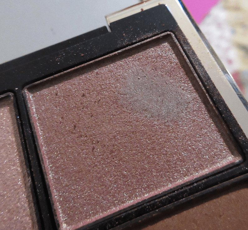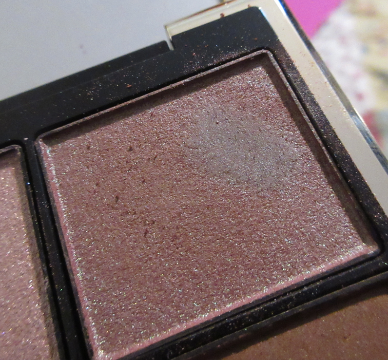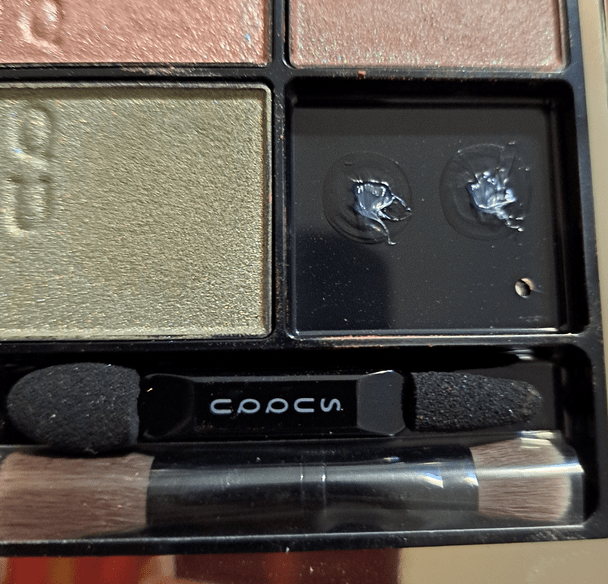 Going back to the topic of wetting my brush, when I tried to build up shade #2 in the Akiurei quad and dipped back into the pan to add layers and intensify the look I was creating, it left a dark splotch in the pan that made me concerned about ruining that satin duochrome and turning the shadow muddy. I was already having issues with the brown being so dominant and the subtle green flecks only appearing at the perfect angle in the light. So, I scraped off the top layer to salvage it. This also occurred with the sparkling duochrome lilac pink shade from the other quad, so I decided to just never use Suqqu eye shadows wet again.