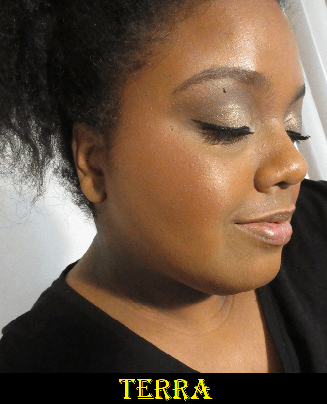 Terra is a “golden brick-red blush,” listed as having a shimmer finish, though the gold shimmer running through it isn’t nearly as obvious as other shimmer blushes I own. The only difference between Terra and Terra Spark (when the overspray is gone) is that Terra Spark has a stronger golden sheen, which alters the tone from brick-red to a slightly orange hue. They essentially look the same on my cheeks, though perhaps on someone with a lighter skin tone, the differences may be more significant. Those two blushes are so close that I had to double-check my files to make sure I didn’t get them confused in the cropping and labeling process because Terra can still look a bit terracotta if the light hits that shimmer a certain way too.