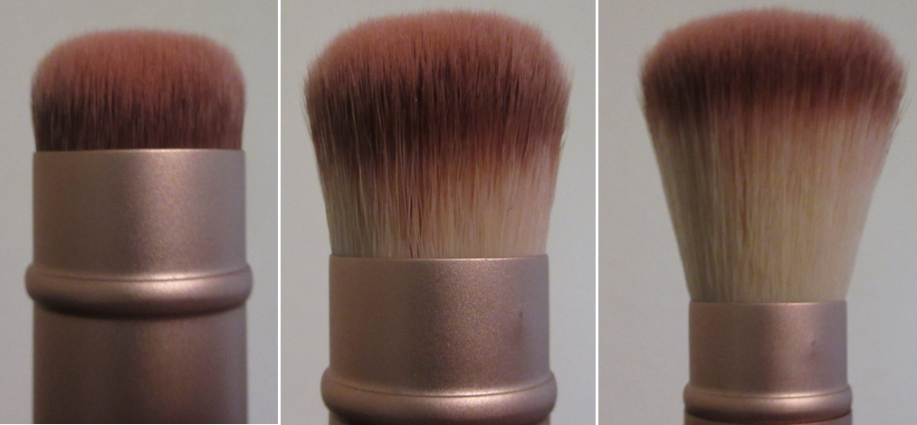I didn’t expect to get much use out of the Benefit Multitasking Brush, and most of its value to me was the fact that it’s a limited edition version (same brush with painted white dots). However, it’s quite a bit handier than I expected because of the adjustable aspect! When the bristles are fully out, it’s the most floppy and least dense. To me, it’s almost unusable with the blushes in that state, but it’s perfect for something like a face powder that I’d want applied in a sheer layer and to be able to blend without needing to buff. With the head retracted a little further (about a third down) is the sweet spot for using this brush with the blushes. I get the amount of density I like for buffing them in. With most of the bristles pushed below, the brush is at its densest and strongest buffing power, suitable for something I want extra blended like sculpting powder products.