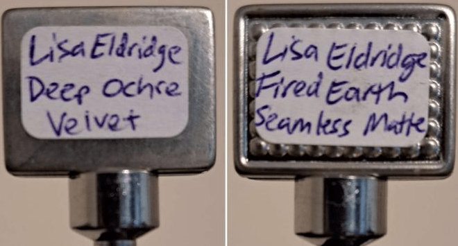 I alternate between using my fingers and brushes with these eyeshadows, and using a finger sometimes causes too much product to bunch up and gives the surface of the pan a mottled looking texture, but it doesn’t seem to be effecting my ability to use them.