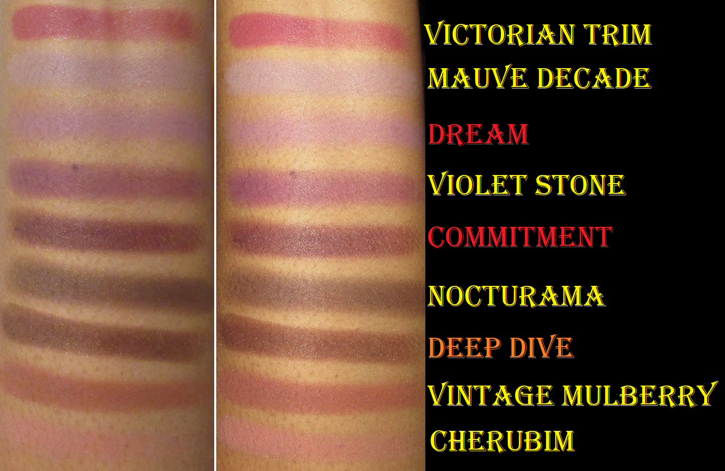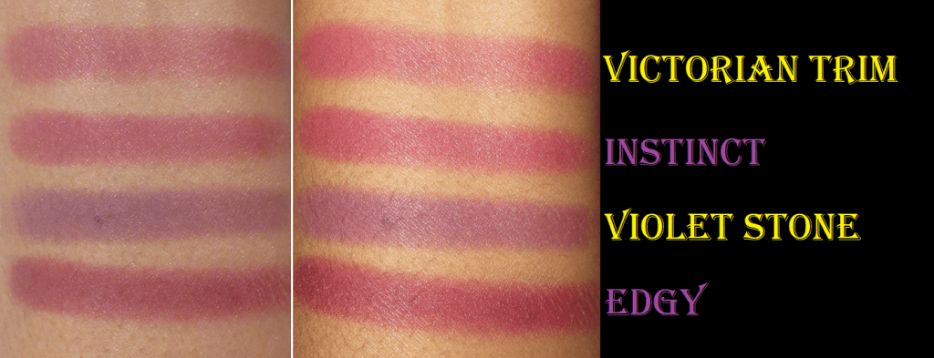 I didn’t realize the Cream Powders from the My Dream Palette were so similar looking. Instinct is the closer dupe for Victorian Trim, but it’s more pigmented. Had I realized this ahead of time, I might have reconsidered buying the My Dream Palette since I already owned Myth. At the same time, I can see that an argument could be made in favor of the Natasha Palette at $69 (around $58 with the 20% off discount at Sephora plus tax) for 15 shadows versus the Myth Palette at $68 for 6 shadows. I can’t say which one I prefer because I’ve yet to use the My Dream Palette other than swatching Instinct and Edgy.