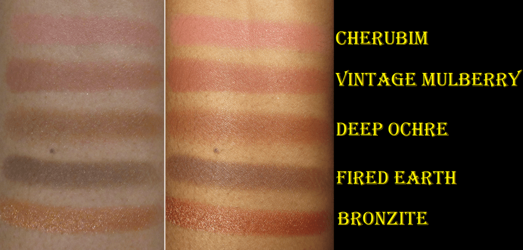 Deep Ochre and Antique are quite similar but, again, it’s from my Metropolis Palette that is getting up there in age. So, I don’t regret buying Deep Ochre. Fired Earth is a great choice since I didn’t have a dark neutral brown in this type of formula.