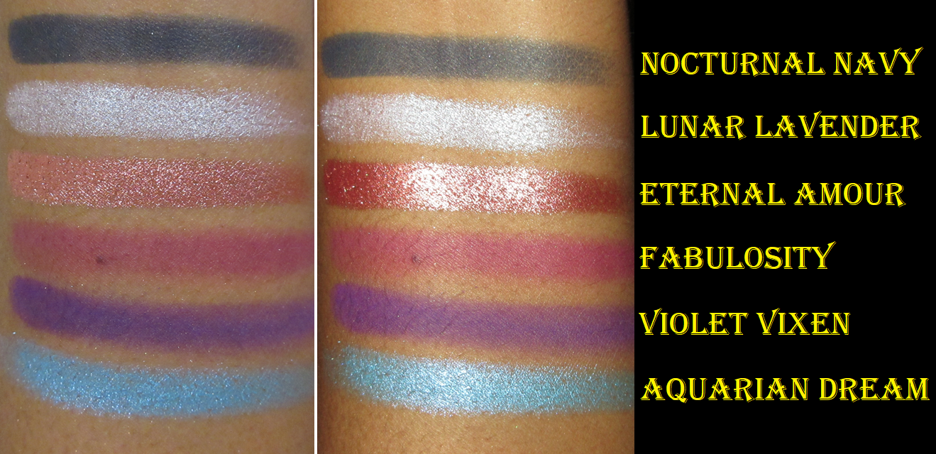 I swatched these from left to right going downward two columns at a time because I see these eyeshadows pairing nicely together in groups of six. So, the first set are the first two columns, the next set are column numbers 3-4, and the last are 5-6.