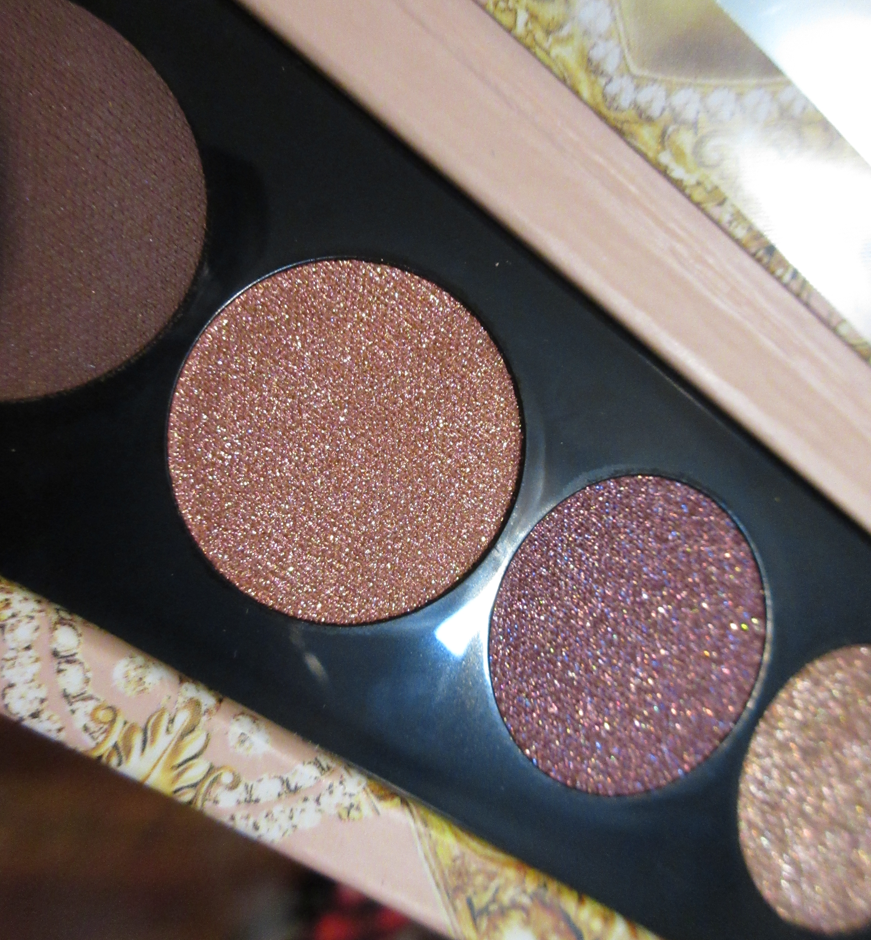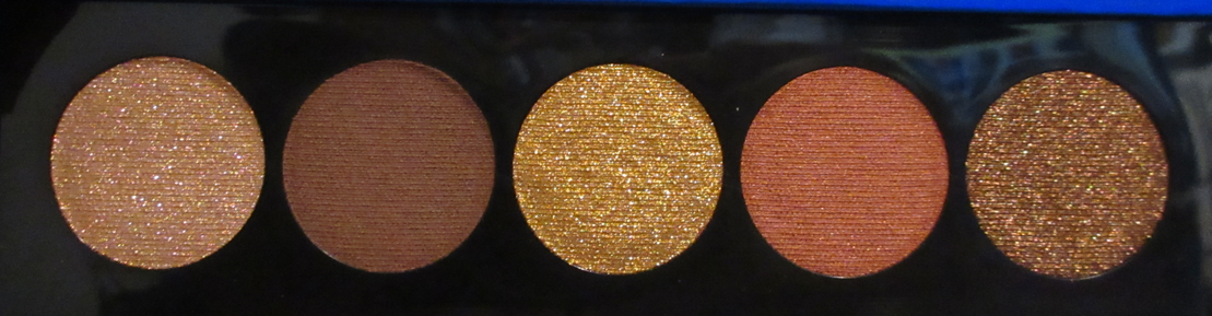 We were given an actual satin in The Golden One palette, but I use Coral Blitz in place of a matte. The actual matte in that palette is Tatooine, which is a lighter brown than the one from Nude Allure. I had no intention of buying The Golden One until I realized it had that extra blendable matte formula unique to the five pan palettes so far from Pat Mcgrath, and because I was curious about Coral Blitz. As to be expected, I was thrilled with Tatooine, but the surprise hit for me was Coral Blitz. I don’t own a satin-shimmer in that tone. The closest thing I can recall is City Dawn, a “rich matte” from the Bobbi Brown Luxe Eye & Cheek Palette last holiday. This shade, with the peachy-coral and less orange tone, plus the tiny golden sparkles make it even prettier to me than the one from Bobbi Brown.