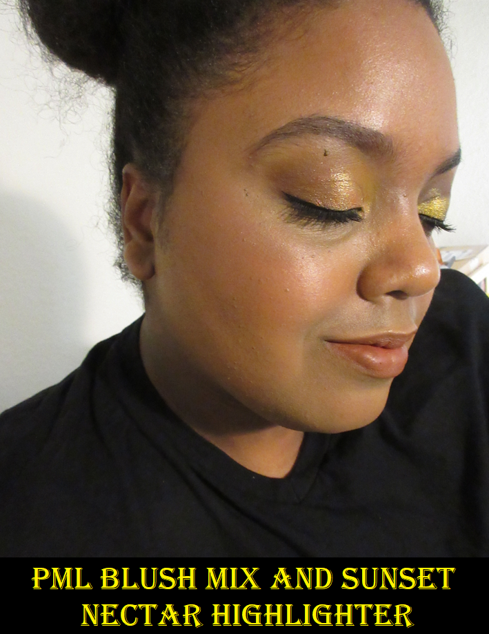My favorite highlighter from Pat Mcgrath is still the Skin Fetish: Ultra Glow Highlighter in Divine Rose. It has the smoothest formula, gives the wet look I love that melts into the skin, and it doesn’t look glittery. Sunset Nectar is more similar to the permanent line of Skin Fetish: Divine Glow Highlighters, which have more apparent shimmer particles, but they still blend beautifully into the skin. I keep wishing for a Skin Fetish Ultra Glow Highlighter in a dark golden color without the slight pink tinge Divine Rose has. I didn’t expect Sunset Nectar to work for me because it is extremely light in the pan, but it somehow does! It looks powdery and stark pinkish-white on my skin when it first goes on, but when I blend it in and then pass my blush brush back over the edges around it, I think I can pull it off!
