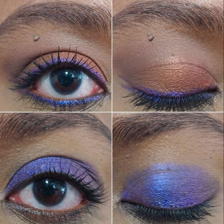 I chose Night of Creation because its the type that no matter what lighting situation it’s in, the angle, or whether it shows a visible shift or not, I would love it and use it in the same way. Kaleidos describes the colors as, “Ultramarine, Violet, and Dark Plum,” and I often use deep and vibrant blues and purples on my lower lash line as a pop of color to a neutral look or as a secondary color to an otherwise monochromatic eye. The other liner color options, for example Limelight, goes on the spectrum of blue, blue-green, green, and yellow-green in a look that I might not want any yellow because the warmth could clash with an otherwise cool tone look, for example. Of course the benefit to having a multichrome is to have a shift, but not if the shifting color might look off next to the tones of other eyeshadows I would be wearing. Night of Creation has all cool tone bold colors, which means it’s most likely to all look good or not at all. That makes it simpler to know when I want to incorporate it in a look or not.