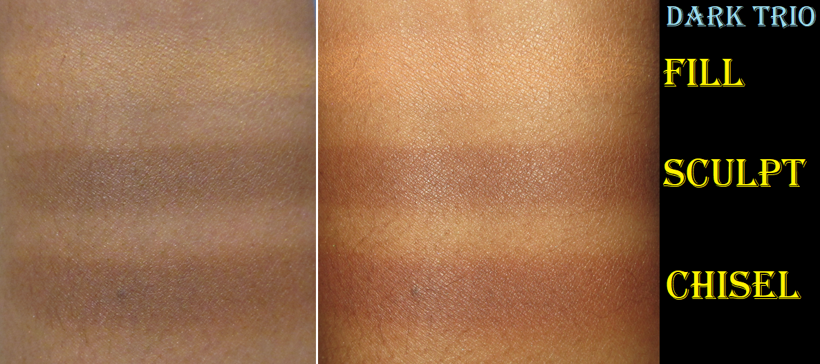 When it comes to using the sculpting contour shade or the chisel brontour color, I get near airbrushed results when my base makeup is matte. When it’s on my typical slightly dewy or natural finish foundations, it can require a little more effort on my part because it may stick a tiny bit where I first lay the product down. Because the sculpt shade is a bit deep for me and I already have to use a controlled hand to have it blend into my skin, I have to be especially careful to apply a little at a time and with a brush that will disperse the product lightly while also aiding in the blend. With the chisel shade, I don’t have to worry about being as precise with it because the color match suits me better. In fact, when I use this trio, I often reach for the fill shade and chisel shade and skip trying to contour. The sculpt shade is cool-toned and deep, so it does have a sculpting effect, but I prefer to have a little more grey so I can actually create a faint shadow. So, if I’m in the mood to contour, I still reach for my Hindash Beautopsy palette instead.