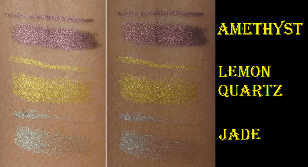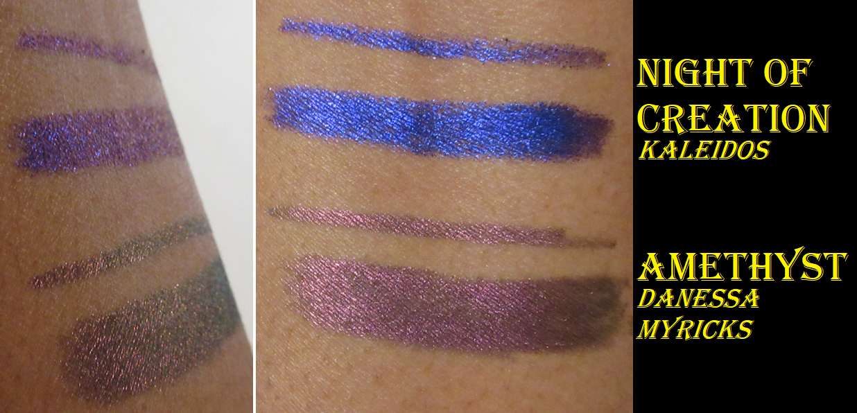 As for longevity on the eyes, they both live up to the claims of being smudgeproof, but because I get oily lids and I tend to rub my eyes, these had some spots that wore off by the end of the day. My upper lash line was fine, but the inner portion of both my lower lash lines had missing product. The Kaleidos held up better though than the Danessa Myricks one did. Those that get oily lids, but don’t rub their eyes, plus those that don’t have an oily-lid problem should have no trouble with longevity. And I should also mention that even though I have oily lids, removing the leftover liner was not an easy task.