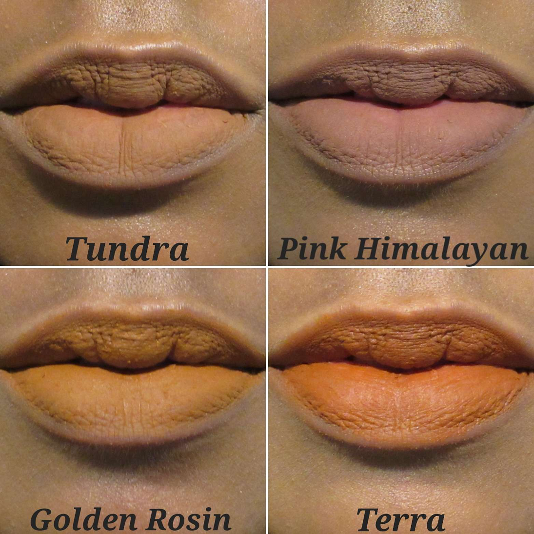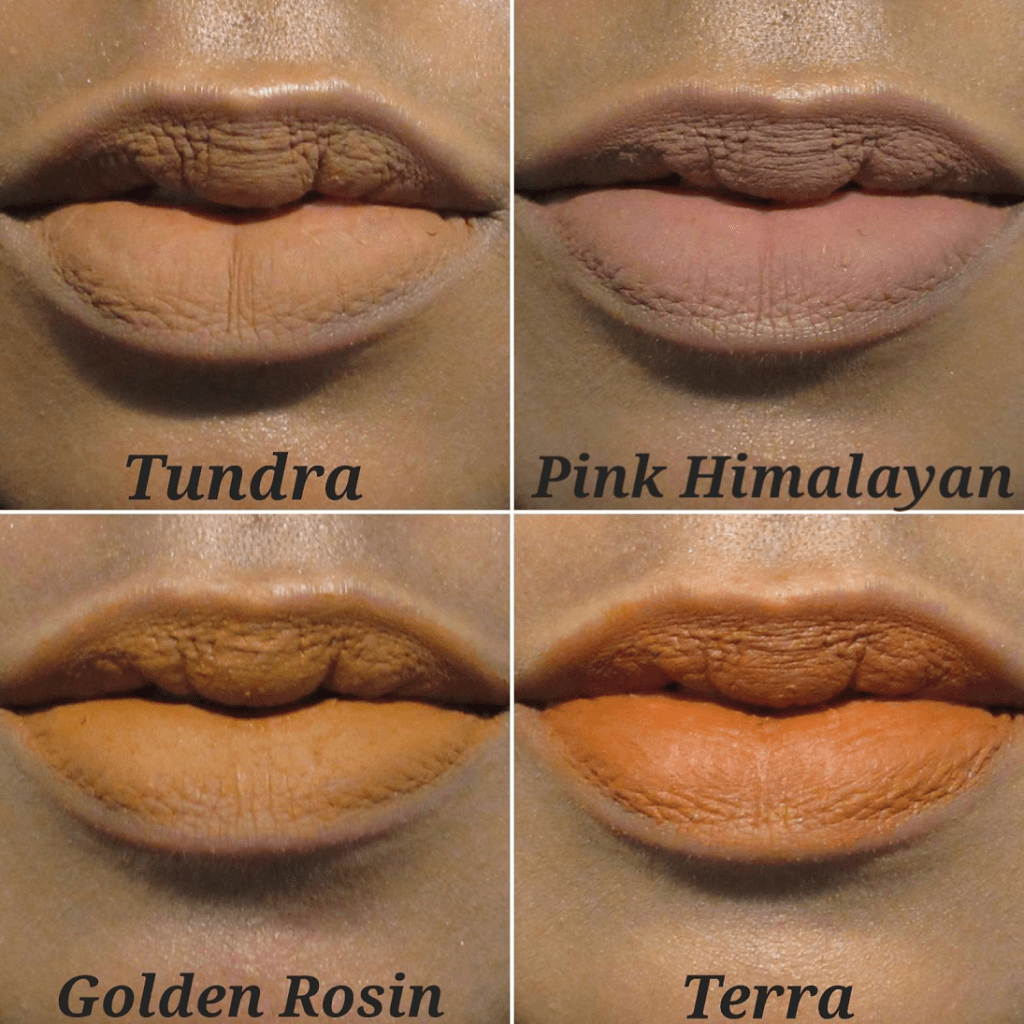 The absolute newest release from Kaleidos is the Sound of Winter Lip Clay Collection. I purchased a custom bundle so I could buy the Willow Wisp Tin with Golden Rosin from that set, Pink Himalayan and Tundra from the Polar Placid Vault, and Terra from the original Sand Castle Vault. I nearly forgot that I purchased Mahogany from the Flora Noir Vault as well in one of the November or December orders, so I will include demonstration photos of that too.