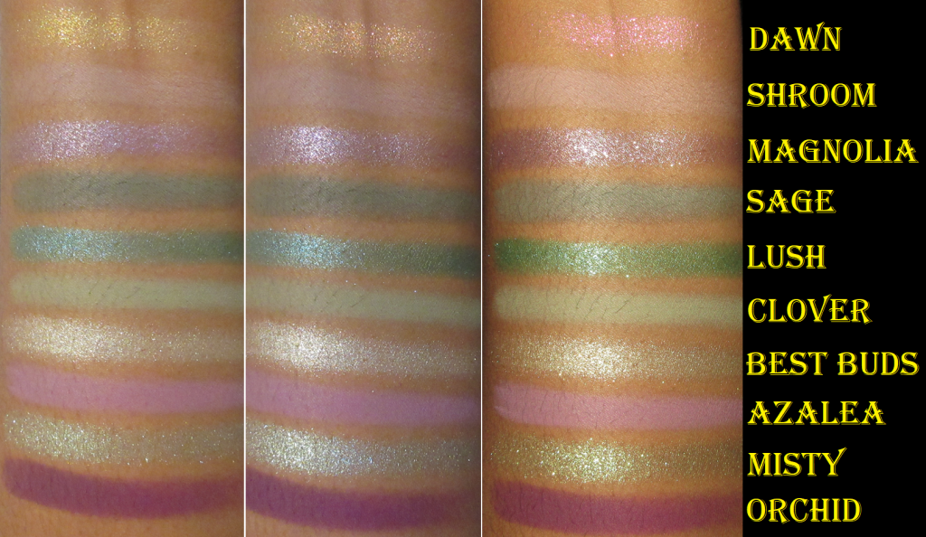 It could be the case that these shimmers perform exactly the way Amanda intended. I think she prefers building up her shadows and likes color, but not too intense. For that reason, I wouldn’t want to judge this palette as any sign of the direction of Oden’s Eye. I just wanted to compare it to other palettes in the past so one can have an idea of what to expect.