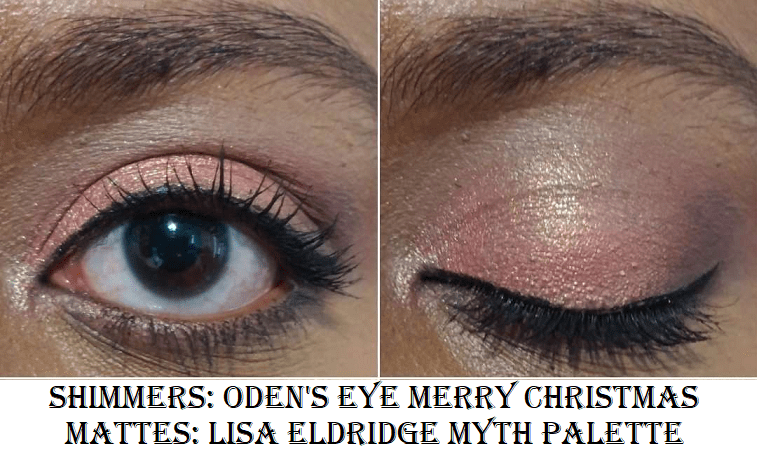 As for the shimmers, some felt chunkier and wetter than others. Best Buds felt and performed the most like a typical Oden’s Eye shadow, but I was suprised that Misty was not very easy to smooth onto my lids. Despite being thick, it still had some spots I could see my skin beneath. Magnolia was thinner in consistency and didn’t have as opaque of a base either. It also gave me quite a bit of fallout. In using these shimmers, I suddenly remembered the complaints I’d heard about there being too much mineral oil or dimethicone in some of Oden’s Eye’s new single eyeshadows (inconsistently across the range). I’m wondering if they started increasing the amount of it in their formulas with these newer palettes from Christmas last year and onward. How wet it feels and the consistency doesn’t necessarily dictate how it will perform though because Lush was a little thick and wet, but did go on more opaque than the other shimmers.