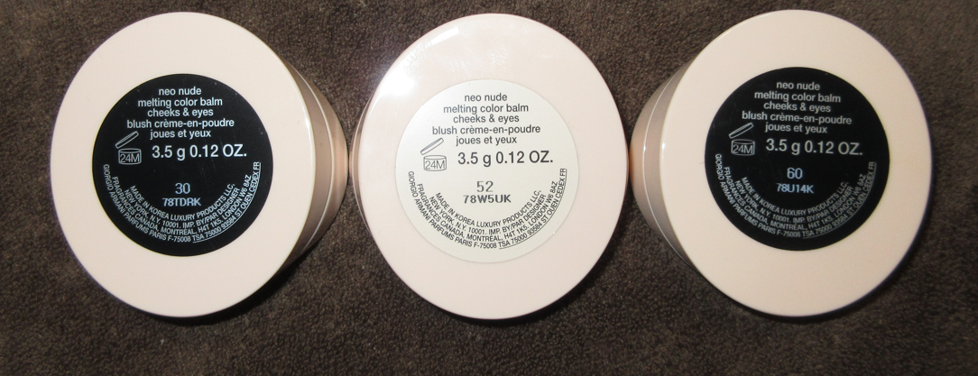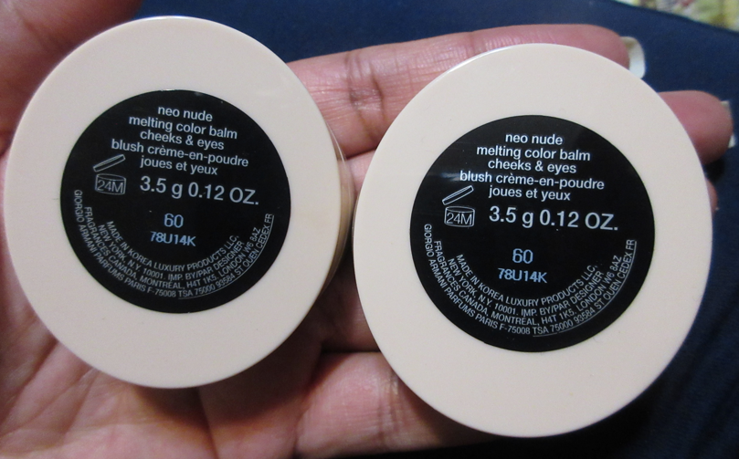 When I purchased the newest shade at the end of last year, I also bought a second version of 60 Warm Plum. One of my only gripes with the Melting Color Balm line is that I absolutely love the creamy and soft texture of shade 30 Warm Coral, but that might be the only one that feels that way. Shade 60 Warm Plum was extremely hard and also difficult to pick up the product and apply it to the cheeks. I thought perhaps it was defective and wanted to wait long enough to eventually repurchase it. When I got the new shade 52 Neutral Pink, I pressed my thumb very hard in the pan and it left an imprint. It’s still nowhere near as soft as 30, but it’s at least better than 60. I still wish it was a little creamier, but it’s at least good enough for me to recommend. As for my new shade 60, I pressed ridiculously hard and could barely make an imprint on the surface. Despite purchasing it a year and a half since the initial launch, the Armani US site is/was still selling the original hard pressed batch, as seen by the identical batch codes.