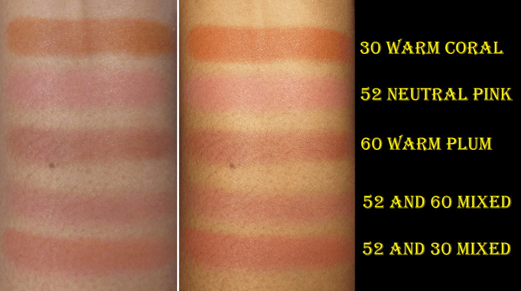 Shade 52 looks a bit prettier now than when I initially bought it. It might be too light for me when summer comes, but my preferred usage for it is to mix it with shade 30 anyway to create what I consider an actual coral color. Shade 30 is described as warm coral, but I consider it to be a terracotta. Adding the pink from 52 is my favorite combination! I’ve also mixed 52 and 60 together, and that makes for a pretty mauve. It’s just more difficult trying to mix those two together when they’re on the drier side than trying to mix with the creamy 30.