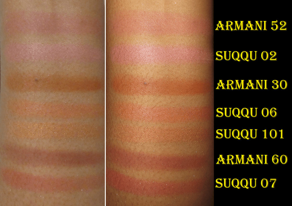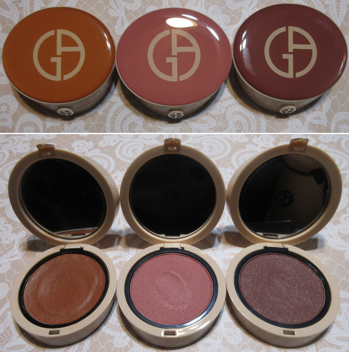 In-depth formula and performance review with photos demonstrating the Armani blush shades 30 Warm Coral and 60 Warm Plum can be found here.