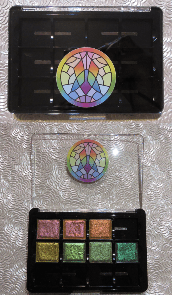 Also, I’m not sure if I’ve shown this before, but Clionadh has been including brand stickers in orders and I’ve saved them to stick onto custom palettes, such as the Viseart Empty SlimPro Palettes which Clionadh Stained Glass shadows fit perfectly into. I place stickers on the front and underside of the lid.