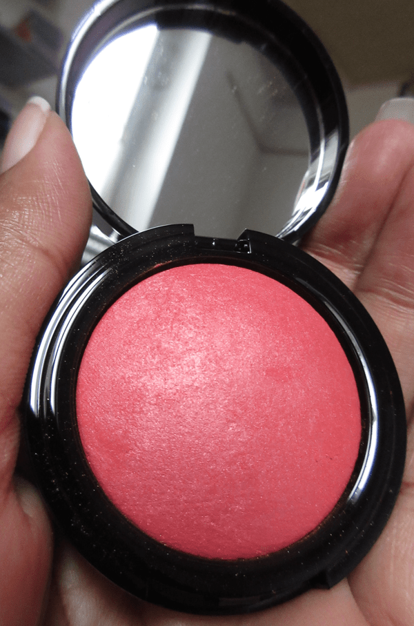 I have to be careful using this one because it’s such a vibrant reddish-pink shade, and pigmented to boot. I tap my brush once into the pan and work that amount of product from my brush onto one single cheek until it’s blended to be less intense. Then I repeat the process on the other cheek.