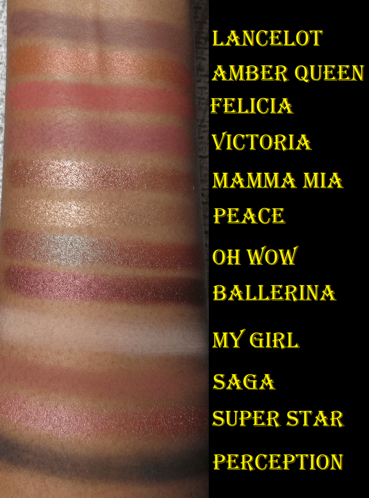 As for the shimmers, I prefer using them wet to aid in the shiny look and ability to layer them up for average intensity.