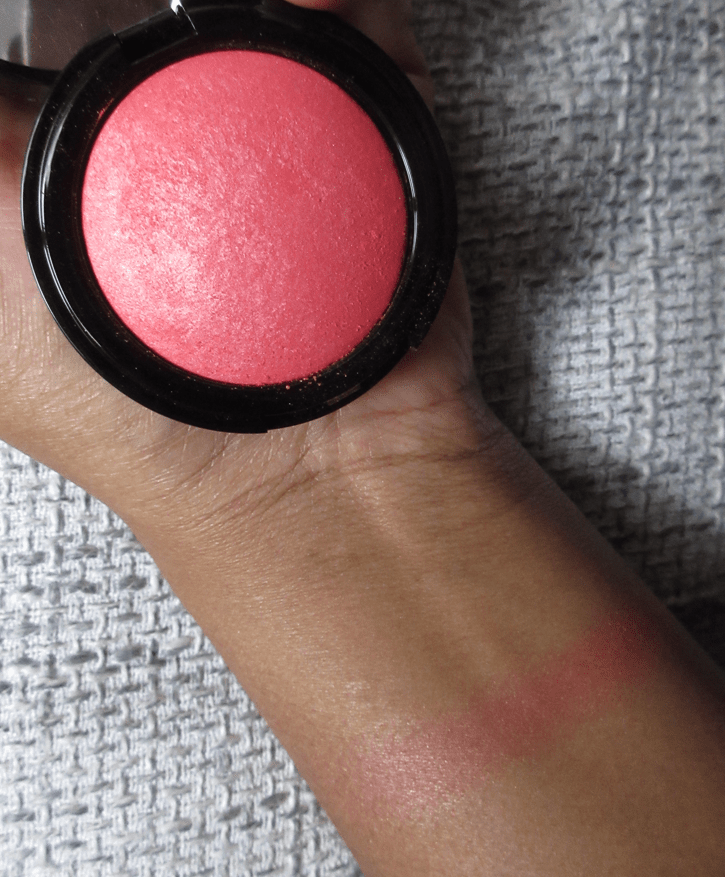 Koralline is quite similar to Lovebite, but with more pink in it than red. I was hoping this would either be light enough to use as a highlighter or deep enough to wear as a full-on blush. I like the base color, but the pearls unfortunately create a cast on my skin tone in certain lighting situations that makes it look ashy, even though it’s absolutely deep enough of a blush shade for me (or would be without the pearl pigments). This has happened to me before with some highlighters that have a base color deep enough for my skin, but the shimmer itself is too dark or too light and that makes it unflattering on my skin tone. I had issues with pearl pigments in my Hourglass vs Guerlain post as well, and even some of MAC’s Mineralize Blushes, which is why it’s the only blush formula from MAC that I’m very picky about. It’s a bit funny that the day I took the photo, it happened to show on my camera the prettiest it’s ever looked!