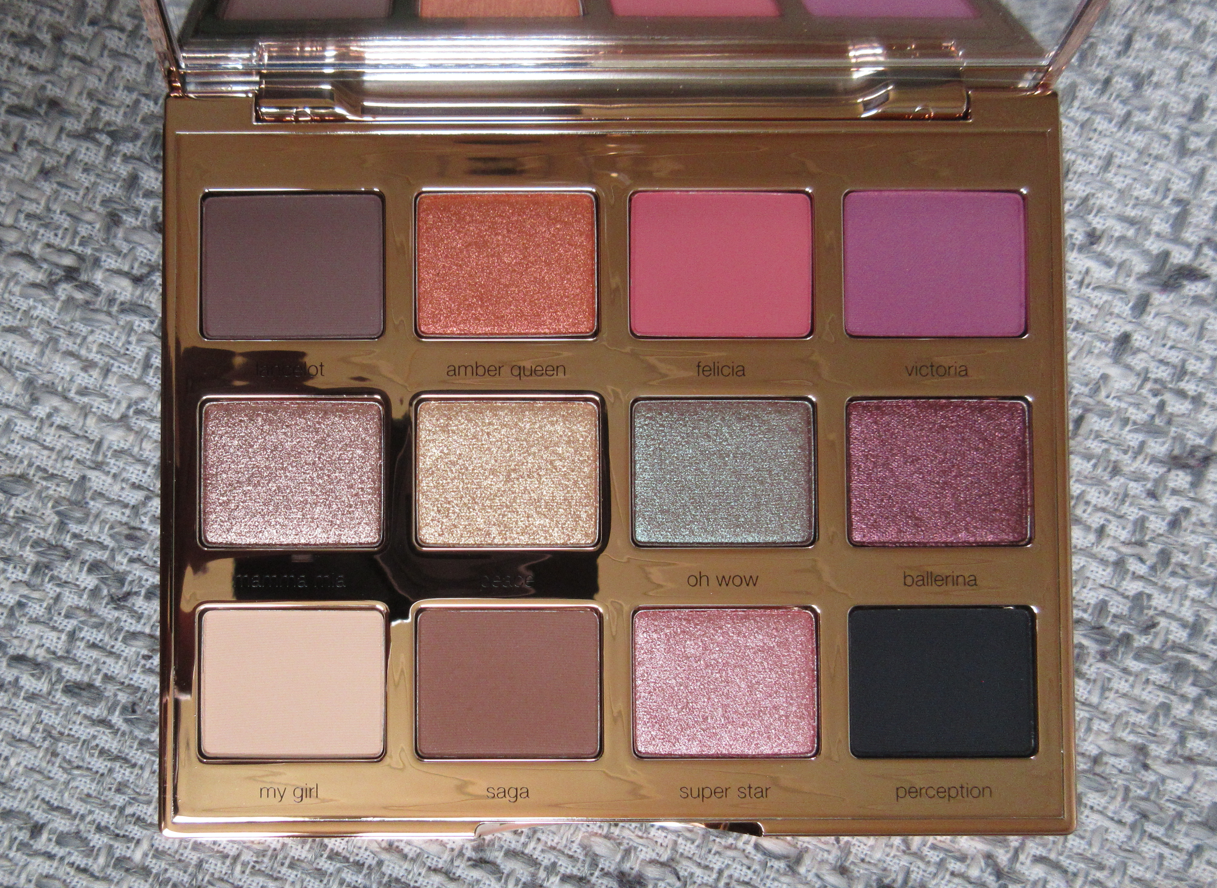 The online photos on the website don’t do this palette justice. The colors are much prettier in person and I was thrilled to see it contains a duochrome called Oh Wow. These eyeshadows are thin, yet give good color payoff, while being in tones that are on the softer side. For instance, instead of an intense red, we have Felicia which is a deep pink-red. Rather than a vibrant purple, Victoria is more of a muted magenta. This makes the palette perfect for someone who likes neutrals, but also enjoys dabbling in “wearable” colors or having festive options for specific outings/occasions.