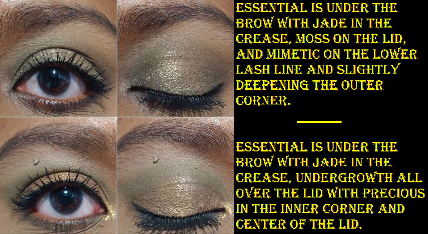 My experience with this particular palette has additional positives and negatives over the Gold N’Roses palette. For starters, I bought it because I forgot to bring a deep shimmer or satin brown shade on the trip with me. Plus, I’m a sucker for pretty green eyeshadows and I was so intrigued by the look of Moss. It’s a combination of various green and gold/bronze shimmer, but it doesn’t have that true duochromatic effect. There’s no shift, but it’s undeniably still pretty.