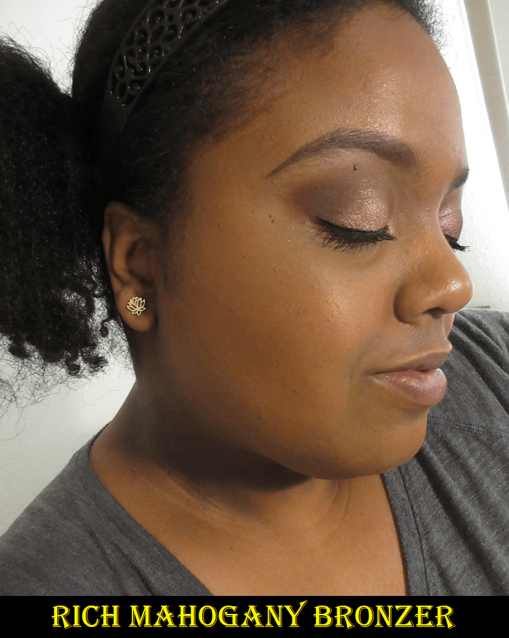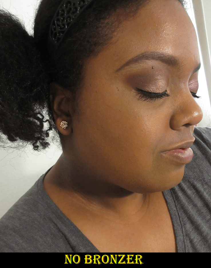 I very much like this formula of bronzer. Beyond being buildable, it has the benefit of the soft and buttery feeling texture that reminds me of the way the Huda Glowish Bronzer feels, but in a lighter consistency that’s more powdery in the way it gets picked up by a brush, while still applying to the skin in a beautiful natural sheen that mimics the look of a baked gelee formula. The brand cites coconut oil and Polynesian Tiare flowers as the sources of the “moisturizing boost with smoothing and antioxidant properties,” that is given to the skin. I believe that combination is how Monoi oil is produced, which I thought I would mention for those who like that oil in products, though Monoi isn’t specifically listed in the ingredients and it’s just coconut oil and the Tiara flowers separately. The emollient nature of this product is supposed to also aid in the adhesion to the skin, which I can attest to this bronzer lasting on me all day without fading. The downside is that I sometimes get the issue that in spots that have more moisture than others, I get a little bit of sticking of a patch that’s darker than the rest. I can mostly blend it out to look even with the rest of my bronzer, but sometimes it’s so stubborn in a sticking spot that I have to wipe it off or cover it back up with foundation, then apply powder, then redo the bronzer application in that spot. If I always powdered prior to bronzer, this might not be an issue. However, because I often skip powdering my whole face, I was able to notice this.