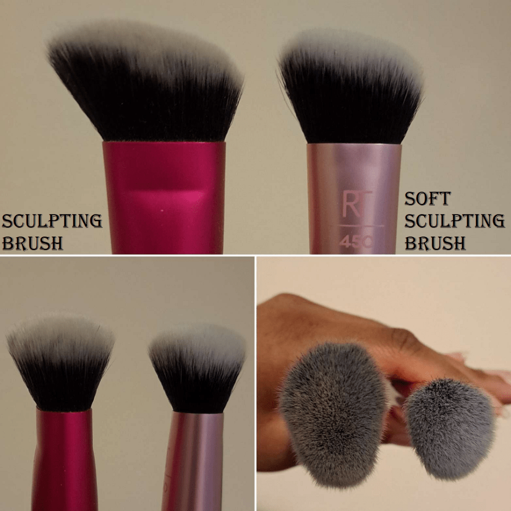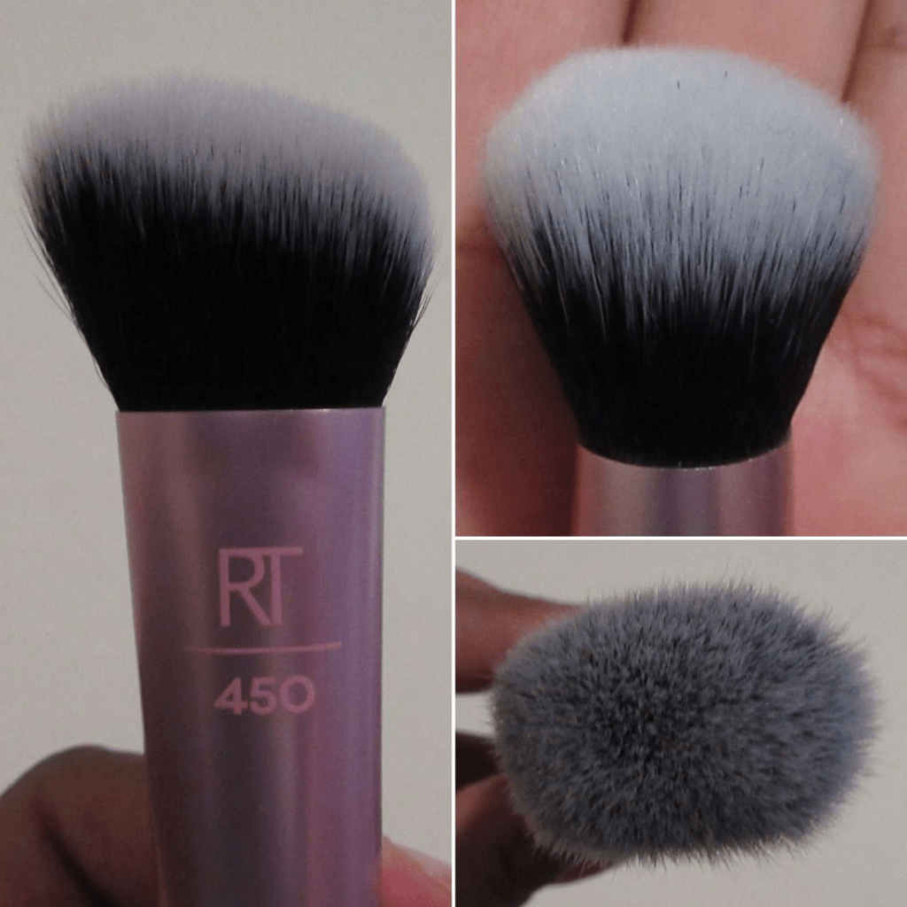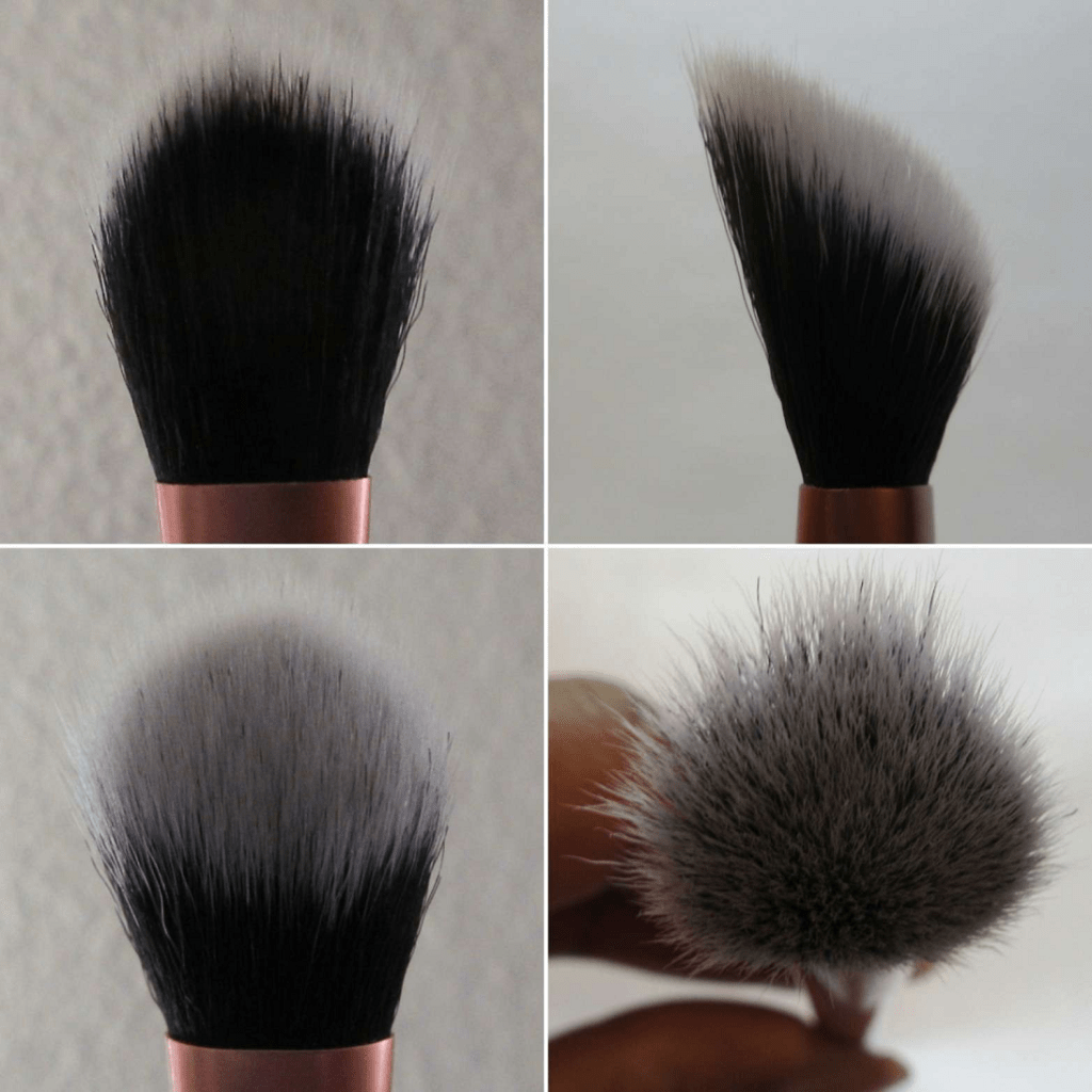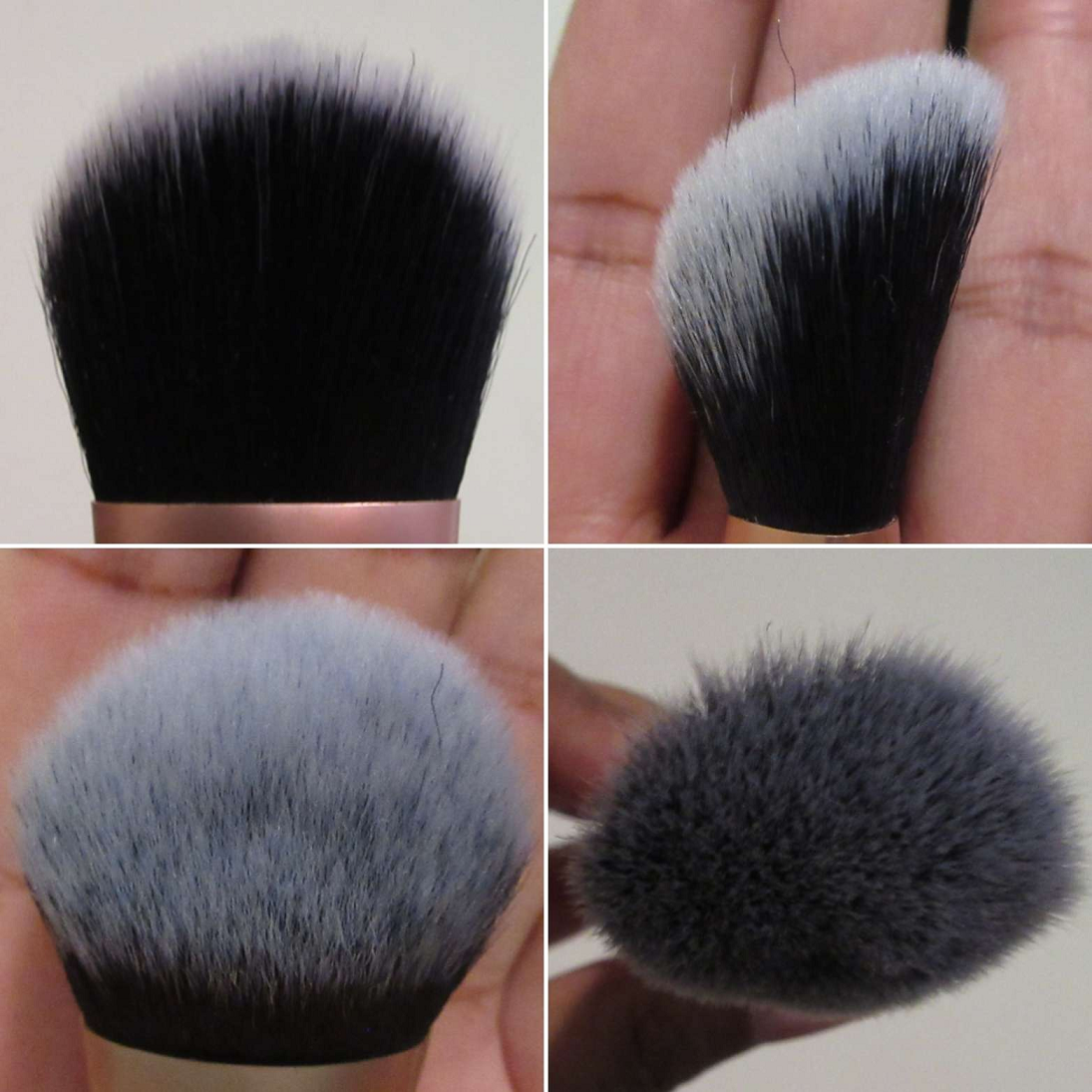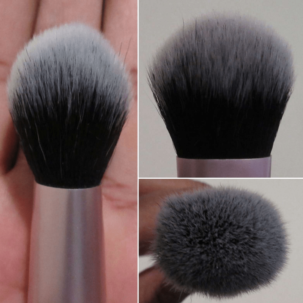 In my previous review, I mentioned that the brand seems to be more focused on quantity over quality and in photos like this one and some of the others throughout this post, you can see the strands that weren’t cut properly (those aren’t loose bristles) by either people or machines, though some of the brushes on Ulta’s website are listed as being “hand cut.” Some brushes of mine have been bundled in a way that don’t look uniform. Some of those ferrules get loose very easily. I can be a little rough sometimes, but this ferrule issue is one I’ve only ever had with inexpensive brushes. Even then, it has only happened with the brushes made after the original black rubber handle ones were discontinued. Quality control just isn’t what it used to be. The permanent lines tend to be better than the limited edition ones, but even these aren’t perfect. I continue to recommend Real Techniques as an affordable brush brand, but sometimes they make changes that aren’t for the better. My Setting Brush, that’s still my top favorite brush from them, has a slightly different brush head than the original. The change was small enough that I continued viewing the new one as my top brush, but the original shape was superior. So, I cannot guarantee that the brushes I recommend of the same name (but different handles as part of different lines) will be the same quality and shape as what I currently own. I just want to make sure I put out that disclaimer.