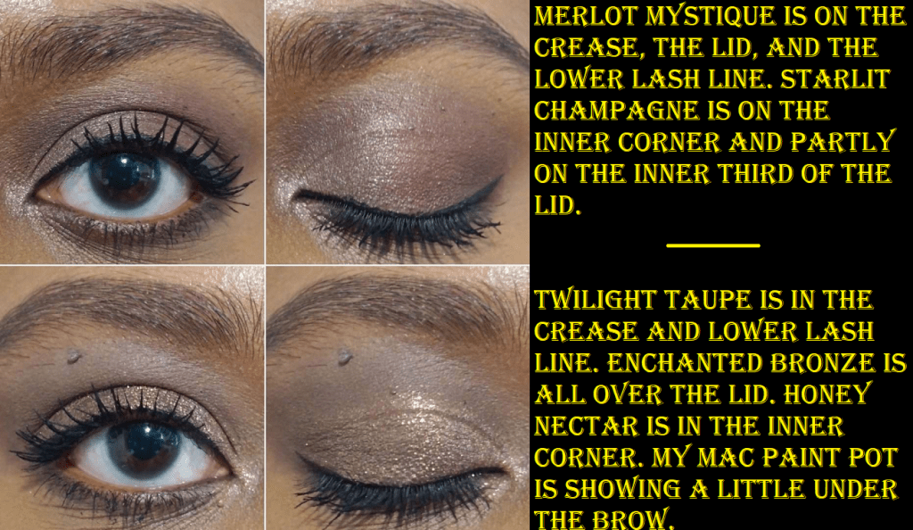 Merlot Mystique is a gorgeous plum-brown that reminds me of the darkest shade in Tom Ford’s Honeymoon quad. When I apply that to my crease, it loses some of the purple tone, so I basically blend those edges to my satisfaction and then add a little more of that shade on top to get the true color to show. The same goes for Midnight Iris that can just look like a deep purple, but adding a little back on at the end will show the vibrancy of that particular color.