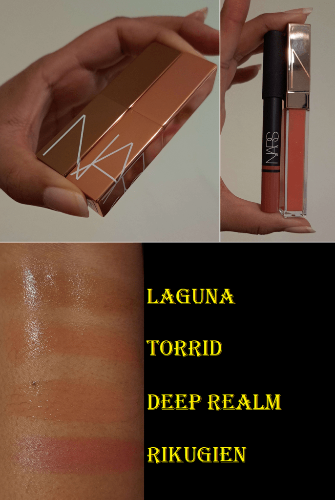 The Thorn oil was in a skincare post HERE. As for the lip products, those are tied to pending upcoming lip product posts. However, since I’m unsure which of these will come first, I’ll go ahead and review them here, along with the additional lip products I bought the following month as well: Too Faced Pillow Balm Pop Rich & Creamy Mini Lip Trio, Nars Afterglow Lip Shine Gloss in Deep Realm, and Nars Satin Lip Pencil in Rikugien.