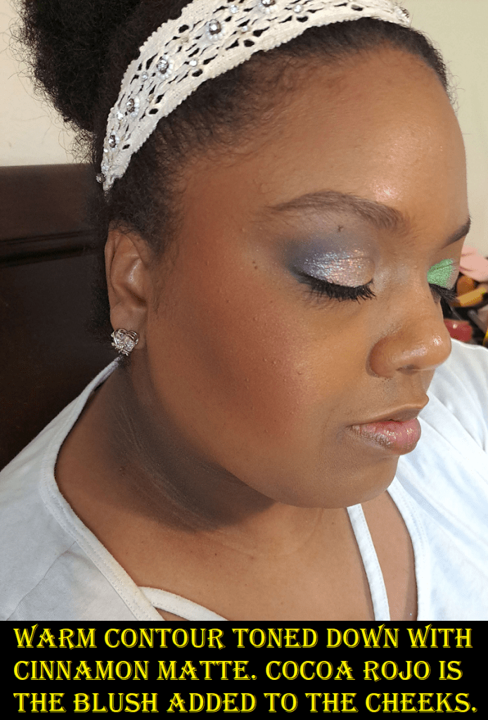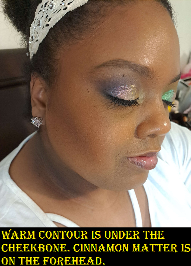 It’s very easy to overdo it with the contour (as seen below) and because it’s so pigmented, I can make it look blended, but it doesn’t sheer out enough. So, it’s best to start slowly and try and build up the color that way. Cinnamon Matte isn’t dark enough to bronze me (though I’m still not sure what purpose it’s actually supposed to serve), but I use it to tone down Warm Contour within reason.