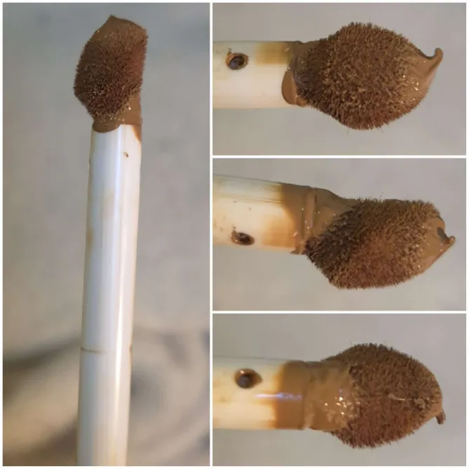 This isn’t a deal-breaker, but the Fenty packaging doesn’t allow one to stand the concealer upright. There are too many pointed edges and the only flat parts are the front and back, so it has to be stored in a laying position unless it’s stored in a container. Also, it has an interesting curve tip for distributing product.