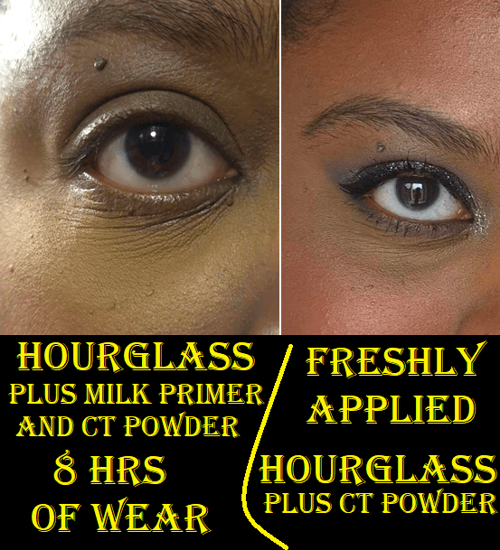 Also, since I have to set it with powder to minimize creasing, I lose a lot of that luminosity. I tested the concealer with various powders and Givenchy’s own Prisme Libre Powder was the only thing that helped my under eyes look at least more hydrated than Shape Tape. Since that initial review, I’ve tested new powders I didn’t have before, and the current best pairing is with the Huda Beauty Easy Bake Loose Setting Powder. The Givenchy powder gives me around eight hours of wear time (six hours on a bad day), but the Huda Powder helps it look close to a natural finish while lasting eight hours before the fading even starts! That’s without bothering to use the Milk primer. Since discovering the Huda and Givenchy power combo, this concealer was able to jump up to the number two spot.