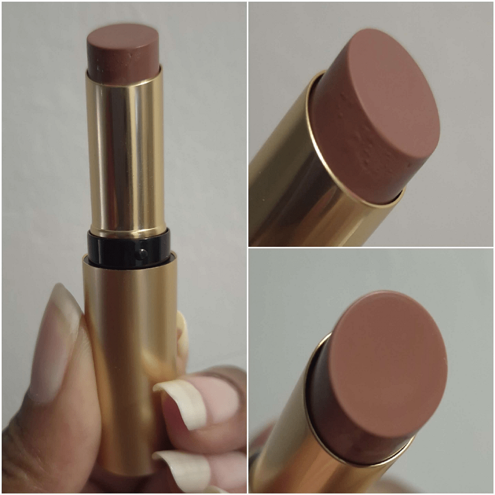 This is one of my favorite lip lines from Lisa Eldridge and the one I’m constantly tempted to purchase more of! For starters, it’s moisturizing. It feels good on the lips. I like shiny/satin lipsticks, so the finish is right up my alley. It’s not that I’m interested in sheer lipsticks per say. I like the kind that deposit color that soak into my lips and doesn’t have the color sitting on top of my lips. It’s hard to explain. It’s as if I applied a lip stain to my lips that got soaked up, but then added a shiny balm on top. Normal lip stains or tints dry out my lips too much though, which is why some semi-sheer/buildable color lipsticks are what I prefer to use to achieve this type of look. Often times, if something is colorful with a balmy texture, it has trouble showing enough of that color on naturally more pigmented lips like mine. There usually isn’t enough color in the balm itself. With the Luxuriously Lucent Lip Colours, they’re pigmented enough to look like separate distinct shades on my lips with some of my natural color peeking under. It’s the “your lips but better” type of situation on me. And though it’s emollient, it isn’t so much that it smears everywhere. There’s still a little grip to it on the lips.