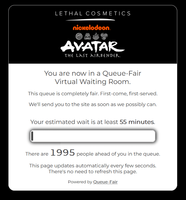 Oh boy! I can’t start this review without talking about the insanity of this launch. There was so much traffic to the website that it went down even before the starting time (4:00 pm Central European Time). There were continuous 500-504 Gateway errors. US shoppers had the option to try their luck with the retailer Camera Ready Cosmetics, but the rest of the world only had the official Lethal Cosmetics website to be able to purchase from. After about 40 minutes, the brand announced on Instagram that they would need time to fix things and for everyone to try again at 5:30 pm CET. They specifically mentioned they would hold the stock back so that even if someone was able to get on the site, they wouldn’t be able to purchase until the appointed time as to make it fair for the ones who got off the website. It was clear they needed less people overloading the servers. The website was still giving the same errors until 5:36 pm, which is when the queue page appeared for me.