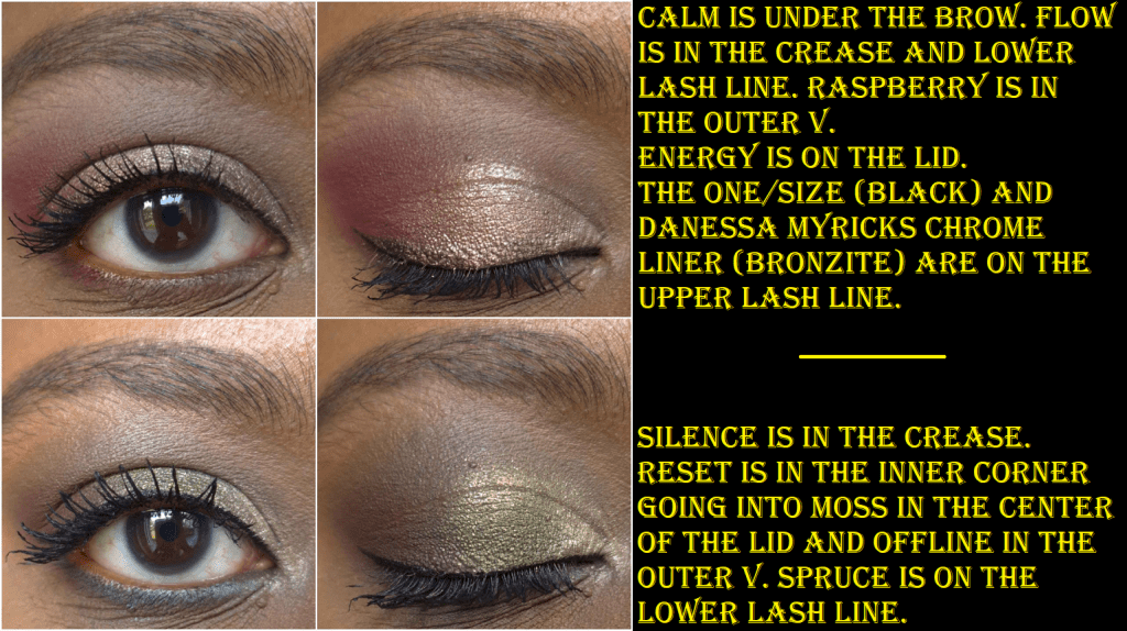 I figured it would be better to test this product with a different mascara, so I picked the L’Oreal Telescopic Lift. This is technically a sneak peek of eye looks for an upcoming review (most likely to be published in October) using the LH Cosmetics Reload Palette. In the top left and right burgundy eye look, I’m wearing the L’Oreal mascara. In the bottom left and right green-brown-blue eye look, I wiped away some of the L’Oreal mascara and then topped my lashes back with the MAC Lash Shampoo.