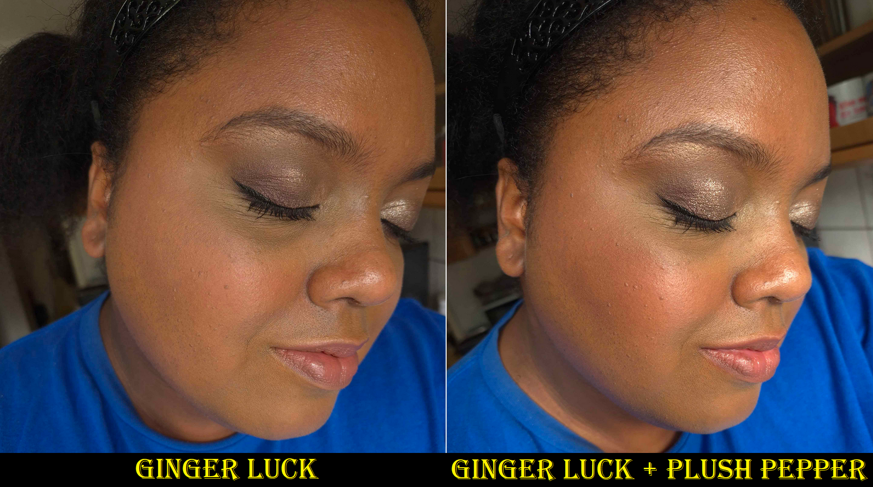 As you can see, Ginger Luck faintly shows up on my cheeks and looks the tiniest bit ashy because it’s too light for my complexion. Adding a little Plush Pepper on top creates exactly the kind of look I was hoping for. The combination is still a sheer light-medium pink shade on me, but the slight boost of rose-red helps it to pop more.