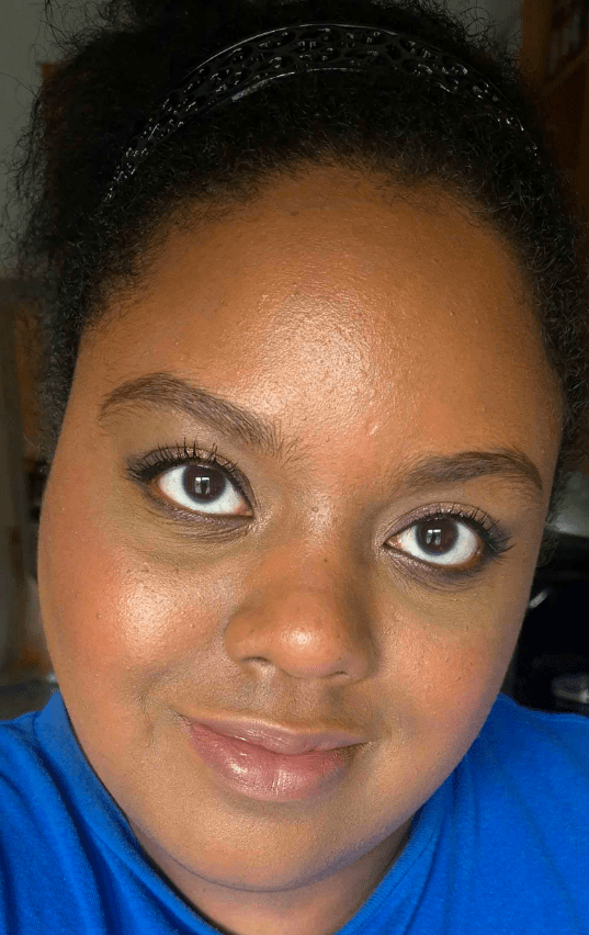 I wondered how I should even go about testing these claims since none of my mascaras need touching up throughout the day. I decided that I should at least see what this could do on its own. So, I applied one coat to my lashes, seen in the photo above. It’s certainly not pretty, but adding a second coat makes them look too clumpy and spidery, which is not my preference. It also doesn’t add much extra length, just volume.
