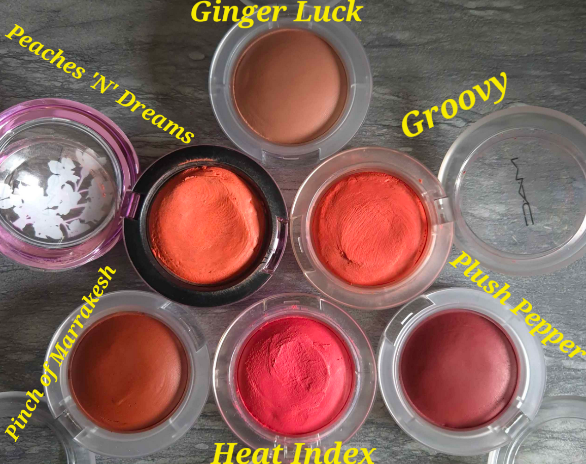 For anyone curious how the colors compare to their older shades, I have a photo below. I also have a close-up video of them on my Instagram. Unfortunately, as discussed in my MAC Blush Declutter post, I had to temporarily leave the others in my collection behind.