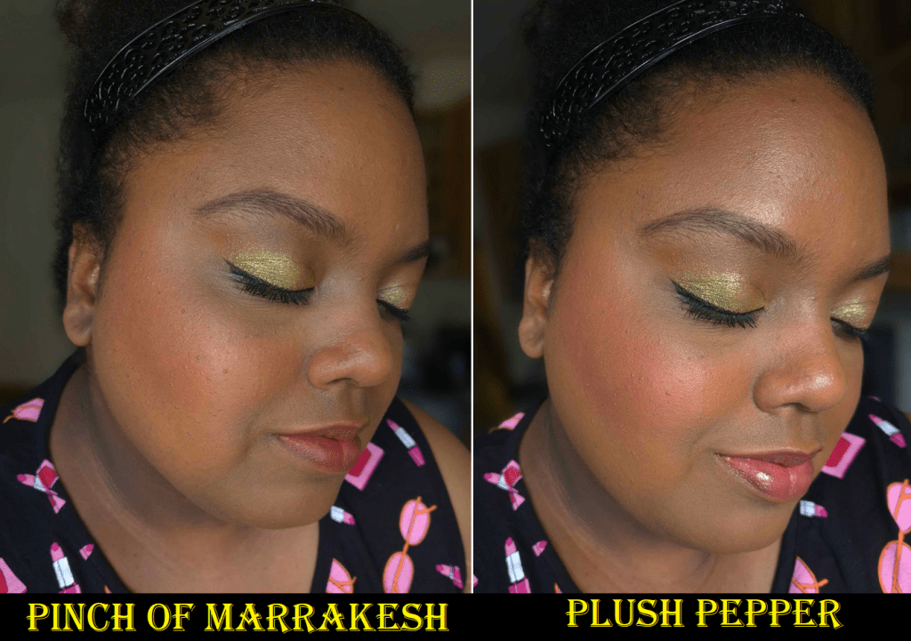 As soon as it was available, I bought two of the three darkest colors: Pinch of Marrakesh and Plush Pepper. The one I opted out of getting is called Big Diva Energy, because it seems like a deeper version of Plush Pepper, and Plush Pepper is plenty deep on me already.