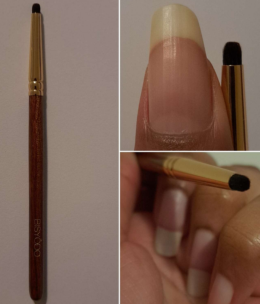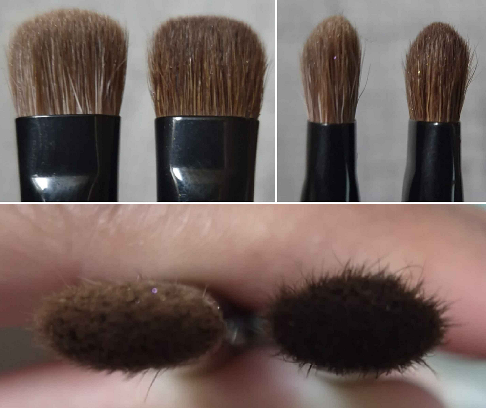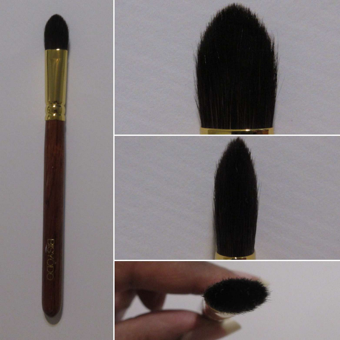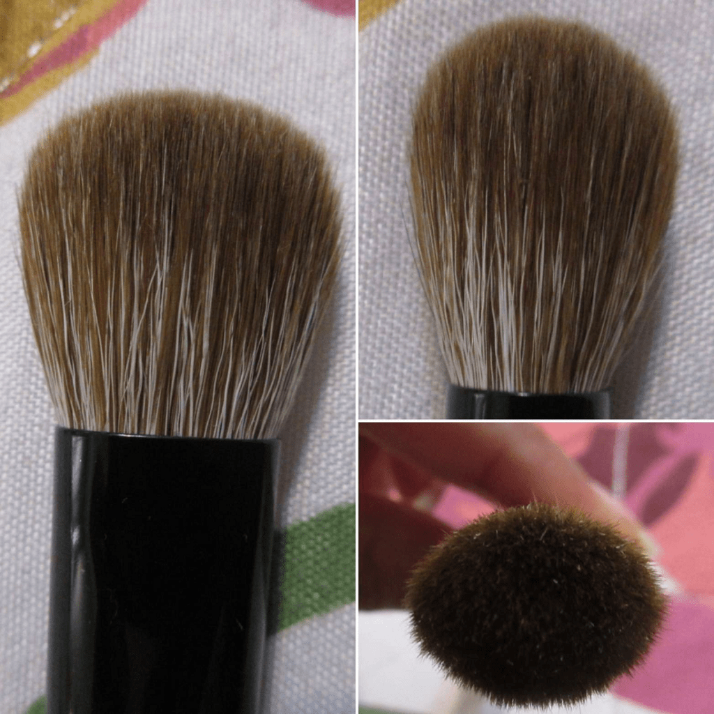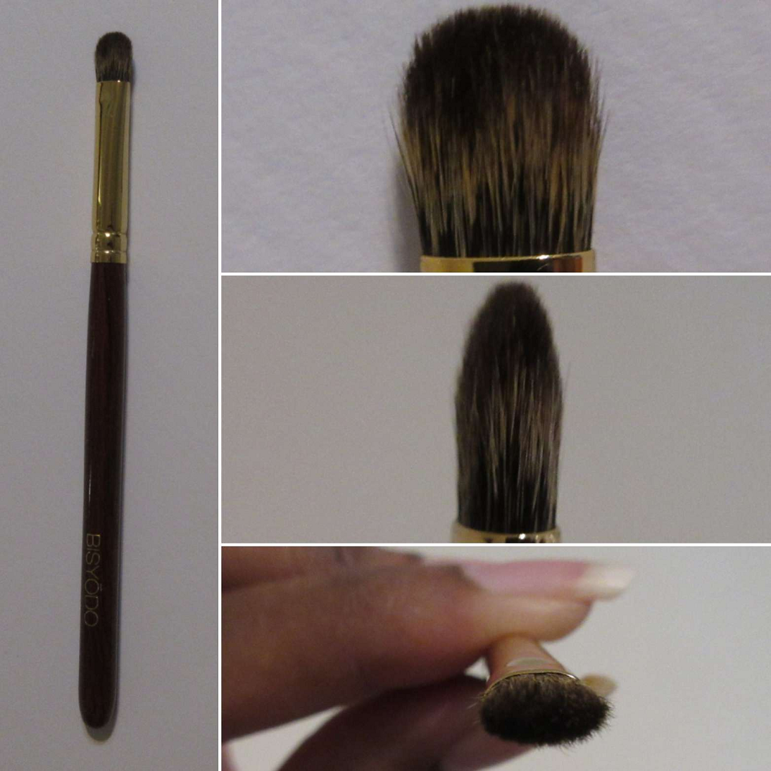 This brush reminded me of the Houkodou GS-1 for its size, but it’s not as soft and the GS-1 is better at both applying and blending eyeshadow.