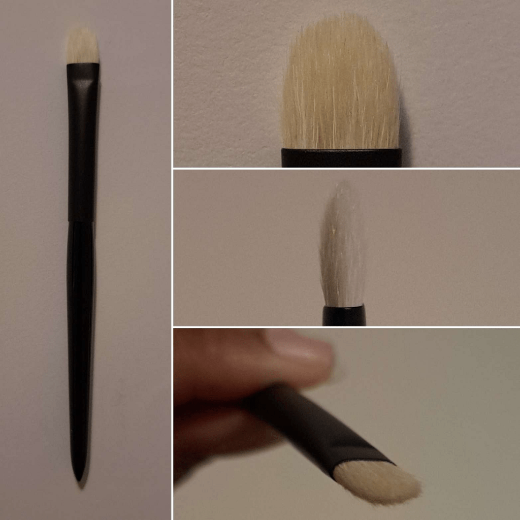 Considering this is a squirrel brush, I was impressed by how much eyeshadow can be picked up and deposited with this brush. It even worked well when I used it with Natasha Denona’s cream-to-powder eyeshadows. I gather up the product and deposit it precisely where I want it to be before switching to larger brush to blend the powder in. Due to its flat shape, it works well for precision application of eyeshadow to my lower lash line. The softness of the hair guarantees a pleasant experience for that delicate area.