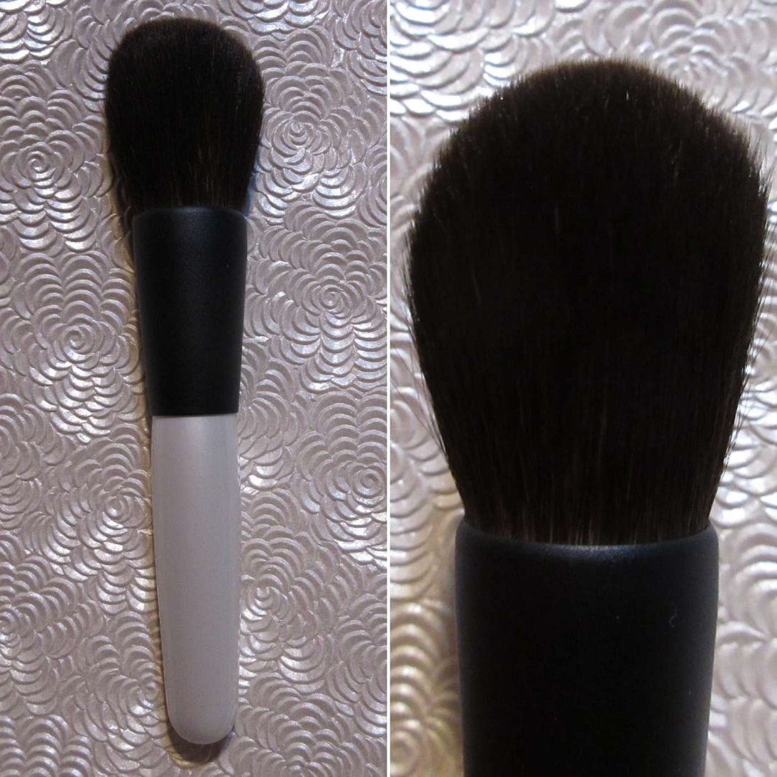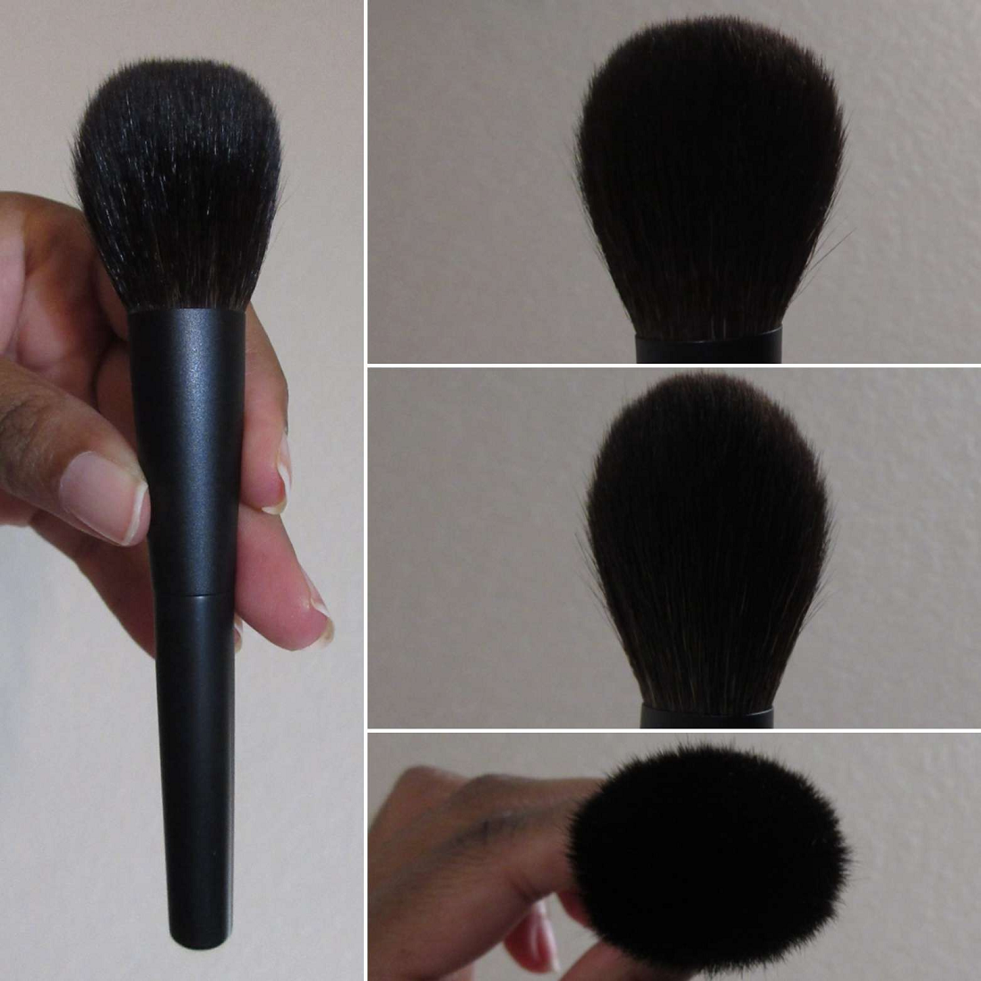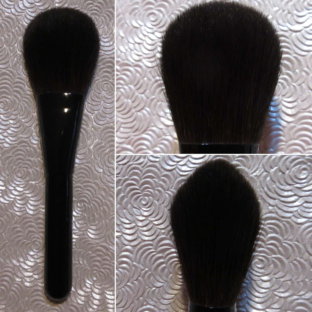 The soft silky bristles, gentle pickup of product, and wispy nature of this brush makes it great for applying a thin layer of face powder and a sheer application of bronzer. Sweeping gestures and circular buffing motions both feel natural with this brush. Because of the generally large size and wide splay area, if someone wants to use this brush with blush, I recommend holding the brush further back on the handles in order to apply less pressure. Doing that allows one to maintain a bit more precision for blush application, but this one is best suited for light applications of face powder and bronzer.
